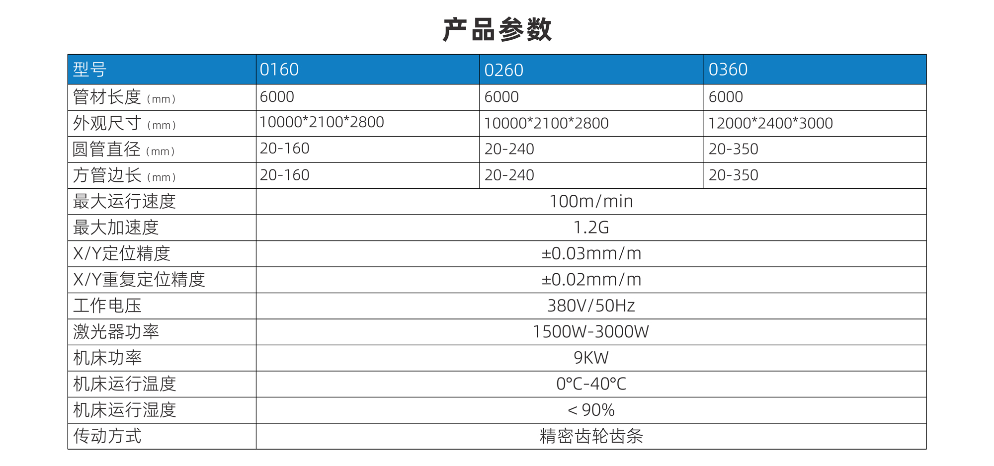 | 外觀尺寸(mm) | 16000*4400*2800 | 16000*4400*2800 | 17000*4700*3000 | 管材直徑(mm) | 圓管Φ20-Φ160 | 圓管Φ20-Φ240 | 圓管Φ20-Φ350 |