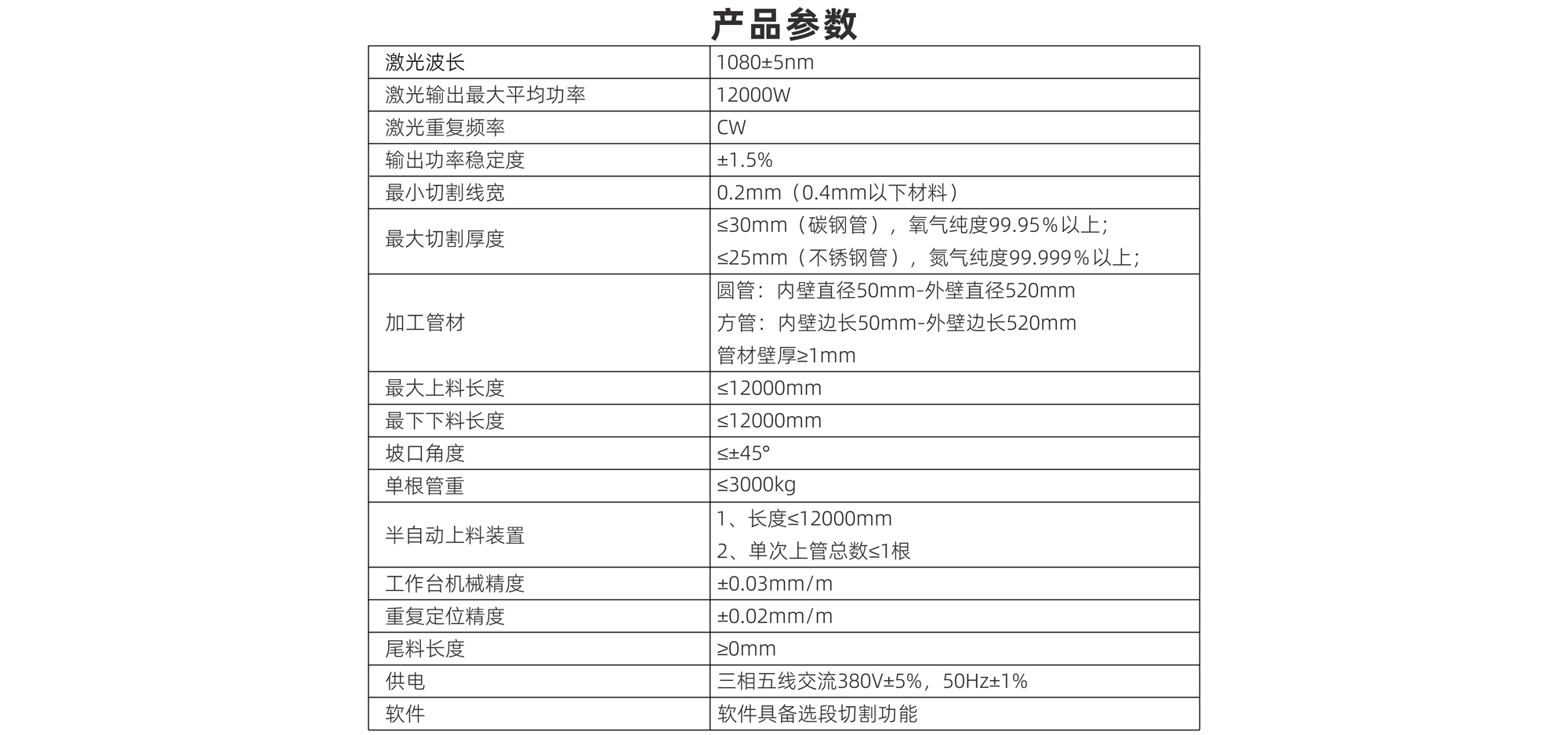 | 最大切割厚度 | 圓管:內壁直徑50mm-外壁直徑520mm 方管:內壁邊長50mm-外壁邊長520mm 管材壁厚>1mm |